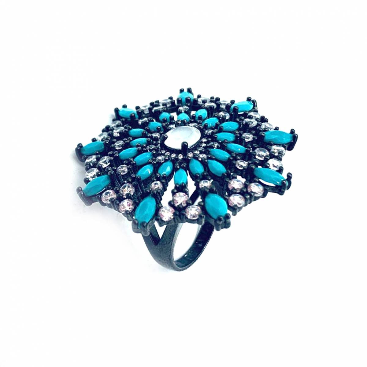 Anel em Prata Oxidada com Zircónias Brancas e Massa de Turquesa AN4974