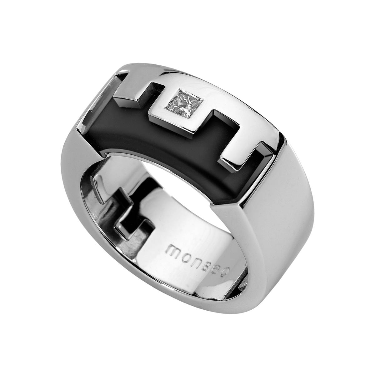 Anel Clockwork: Anel em ouro branco 19.2K e cauchu com 1 diamante lapidação princesa com 0.13 ct.