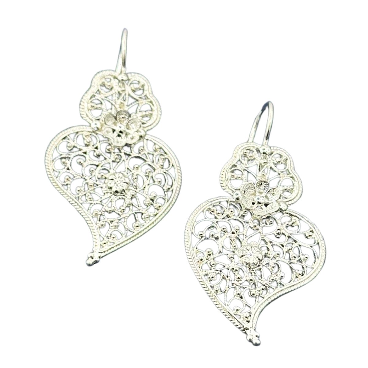 Estes brincos em prata 925 com filigrana são a combinação perfeita de elegância e sofisticação. Com 4,5 cm de comprimento e pesando 6,5 gramas, o design de filigrana artesanal traz um toque de delicadeza e estilo, tornando-os ideais para ocasiões especiais ou para complementar o seu look diário. A prata 925 garante durabilidade e brilho, enquanto a técnica de filigrana adiciona um charme atemporal à peça. Perfeitos para quem aprecia joias de alta qualidade e design refinado, estes brincos são uma escolha elegante para qualquer momento.