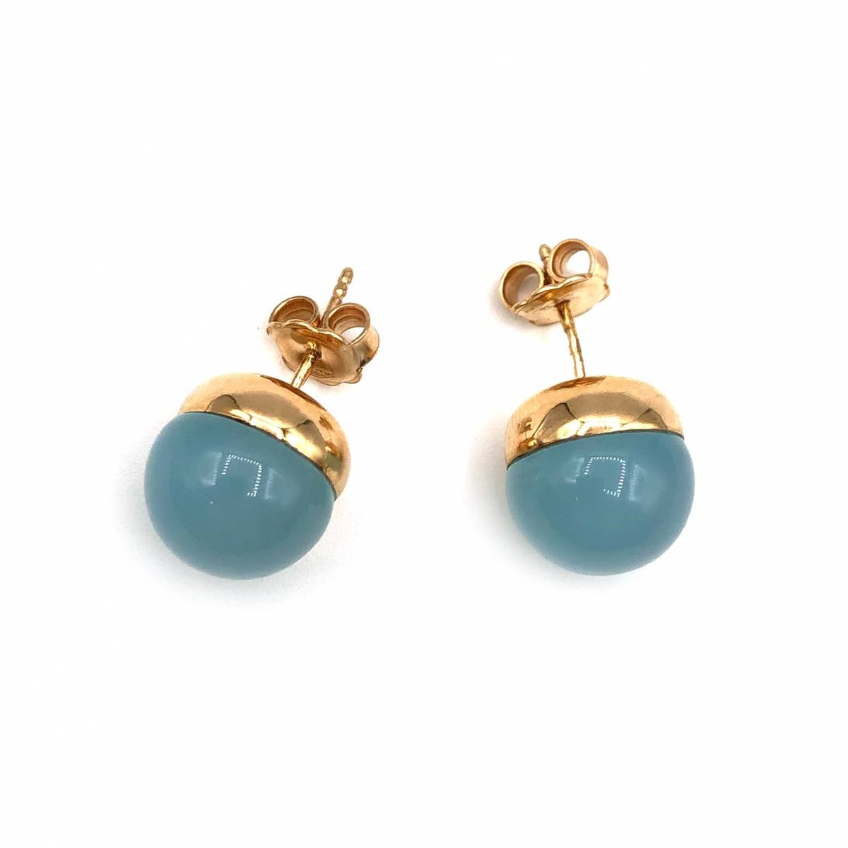Brincos Ouro Rosa com Calcedónia Azul BR08445