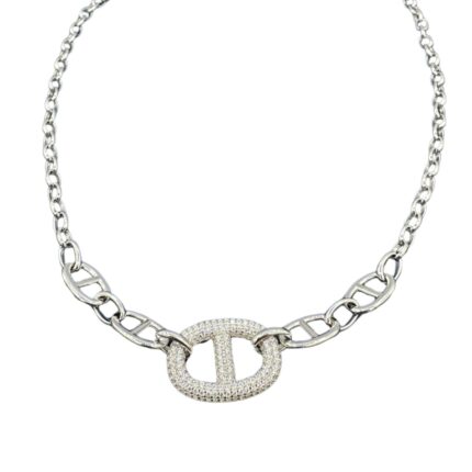 Colar em Prata 925 com Argola ao Centro e Zircónias Brancas