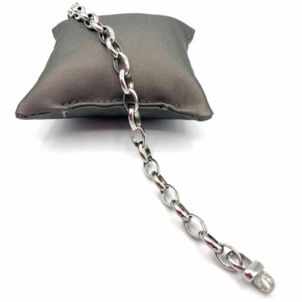 Pulseira Prata Rodinada Elos Ovais Ocos PU02744