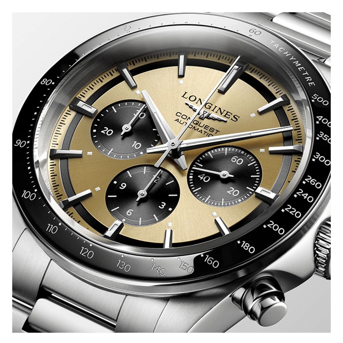 Cada peça oferece uma fusão discreta de tecnologia e estética, com características de alta performance que acompanham o estilo de vida dos que se desafiam a ir além. A Conquest é a escolha perfeita para quem busca uma expressão refinada de determinação, unindo tradição e inovação num relógio icônico.