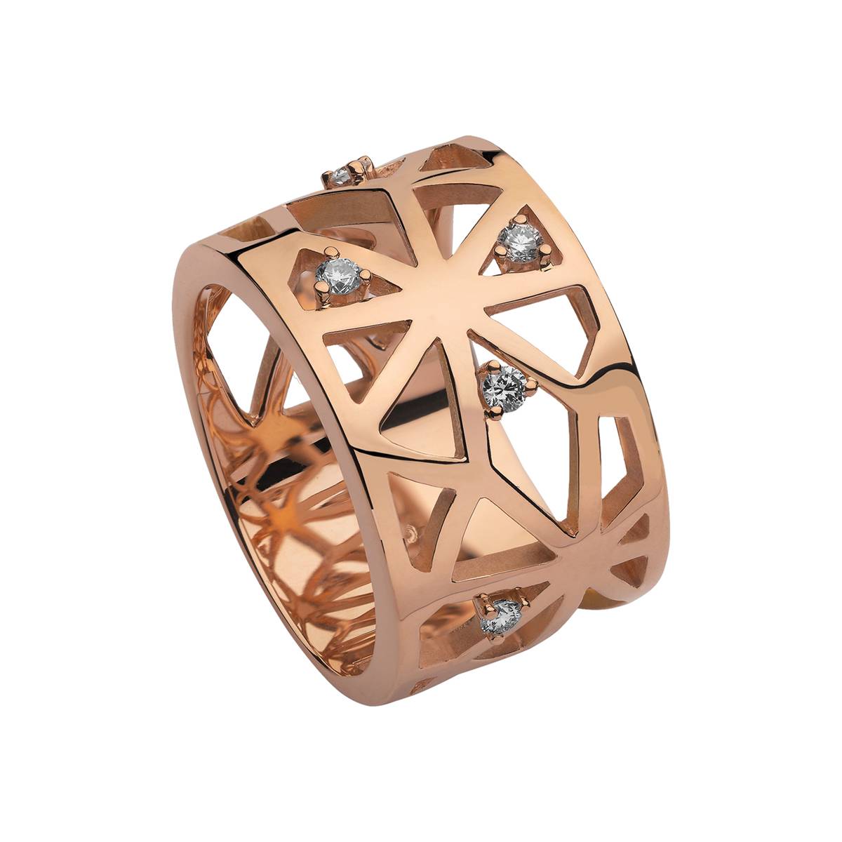 Anel Portuguese Story: Anel em ouro rosa 19.2K com 5 diamantes lapidação brilhante com 0.15 ct.
