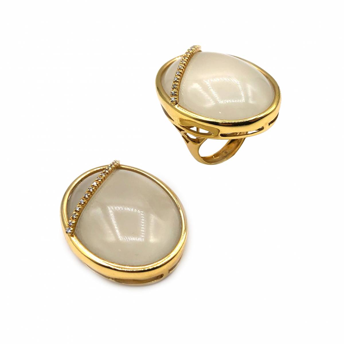Anel e Pendente Ouro Madre Pérola com Quartz e Bts AN2950/BQ01758