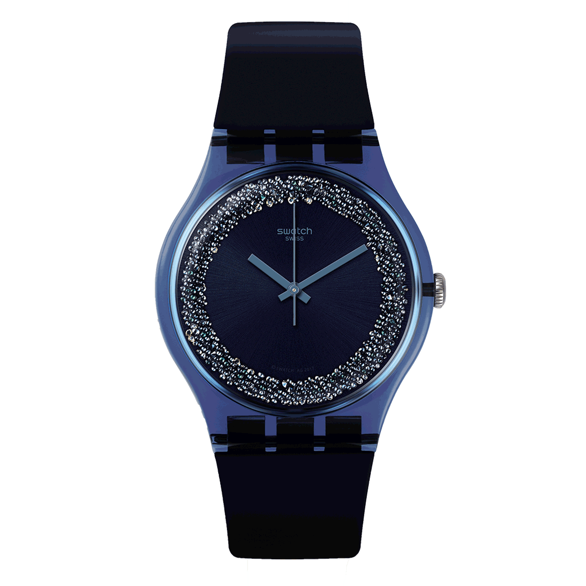 Um surpreendente aro polvilhado com cristais Swarovski® envolve o mostrador do BLUSPARKLES (SUON134). Este relógio azul escuro é tão encantador como o céu numa noite estrelada.