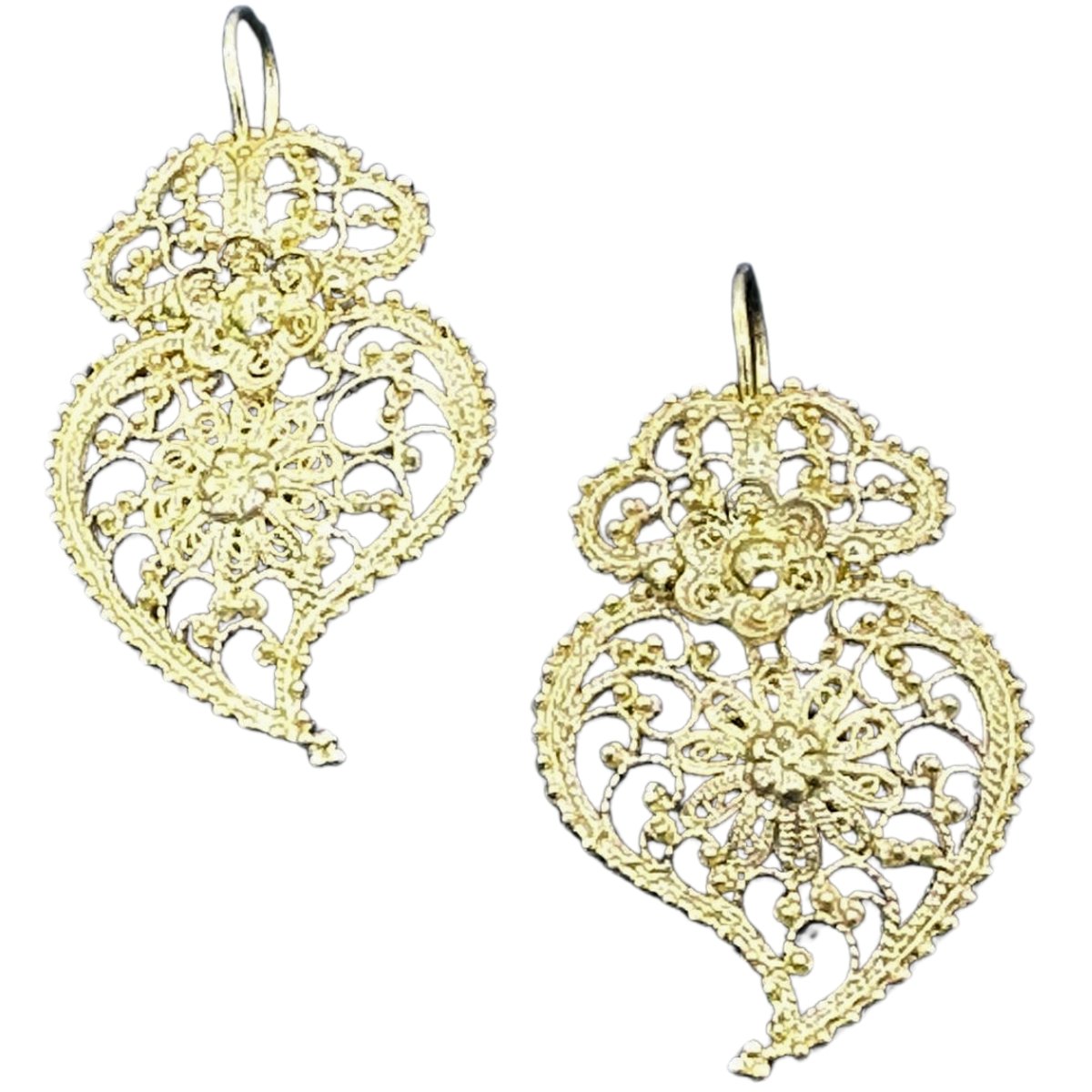 Brincos em Prata 925 Dourada com Coração de Filigrana – 4,5 cm |