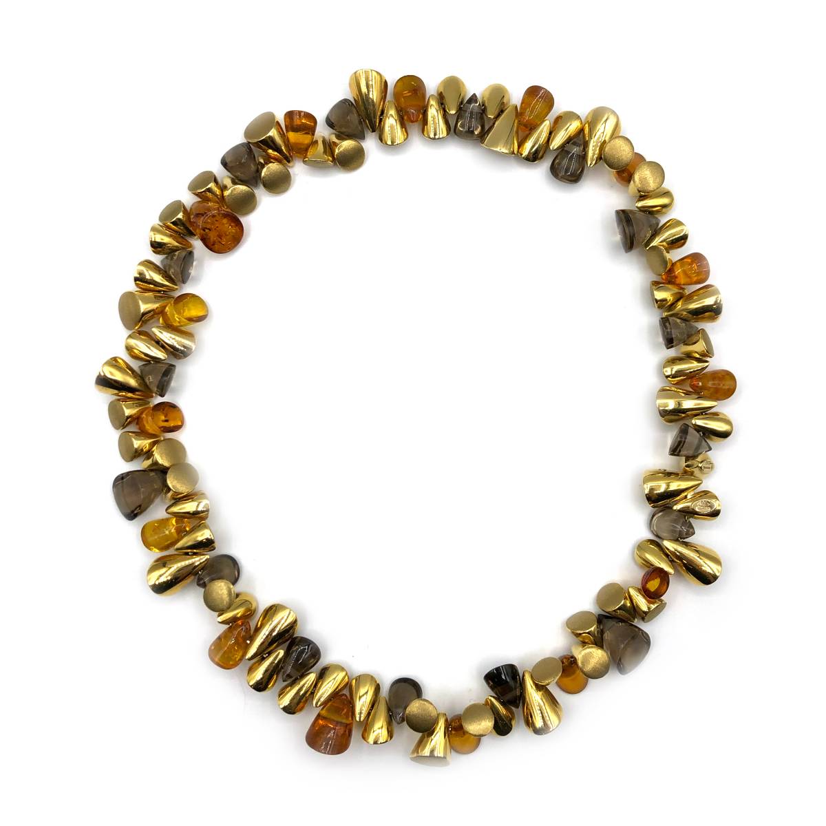 Colar Ouro Quartz Fumé Ambar CL1001