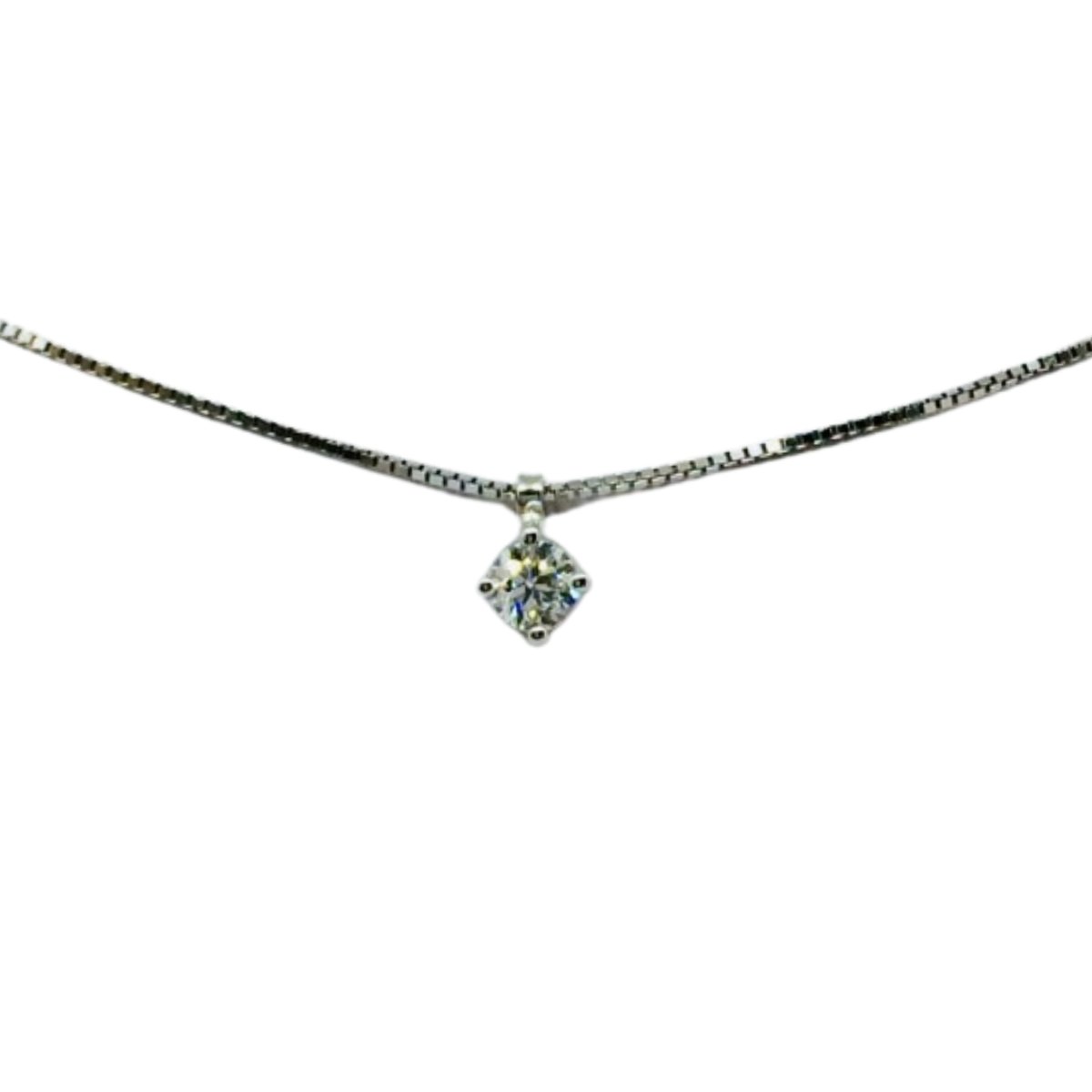 Fabricado em ouro branco 18k rodiado, este colar apresenta um delicado diamante central, refletindo um brilho deslumbrante que destaca a sua simplicidade sofisticada. Cada detalhe desta peça é cuidadosamente elaborado para exaltar a beleza natural e a qualidade superior que define o prestigiado nome Davite & Delucchi.