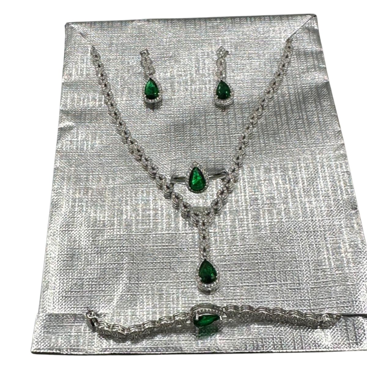Este conjunto completo em prata 925, composto por colar, brincos, anel e pulseira, é a escolha ideal para quem busca elegância e sofisticação. Com Zircónias brancas e verdes de alta qualidade, cada peça adiciona brilho e cor ao visual, tornando-o perfeito para ocasiões especiais. Com um peso total de 23,1 gramas em prata, este conjunto é ideal para quem deseja uma joia refinada e luxuosa. A prata 925 garante durabilidade e resistência, tornando este conjunto uma escolha atemporal e de alta qualidade para quem aprecia joias exclusivas.