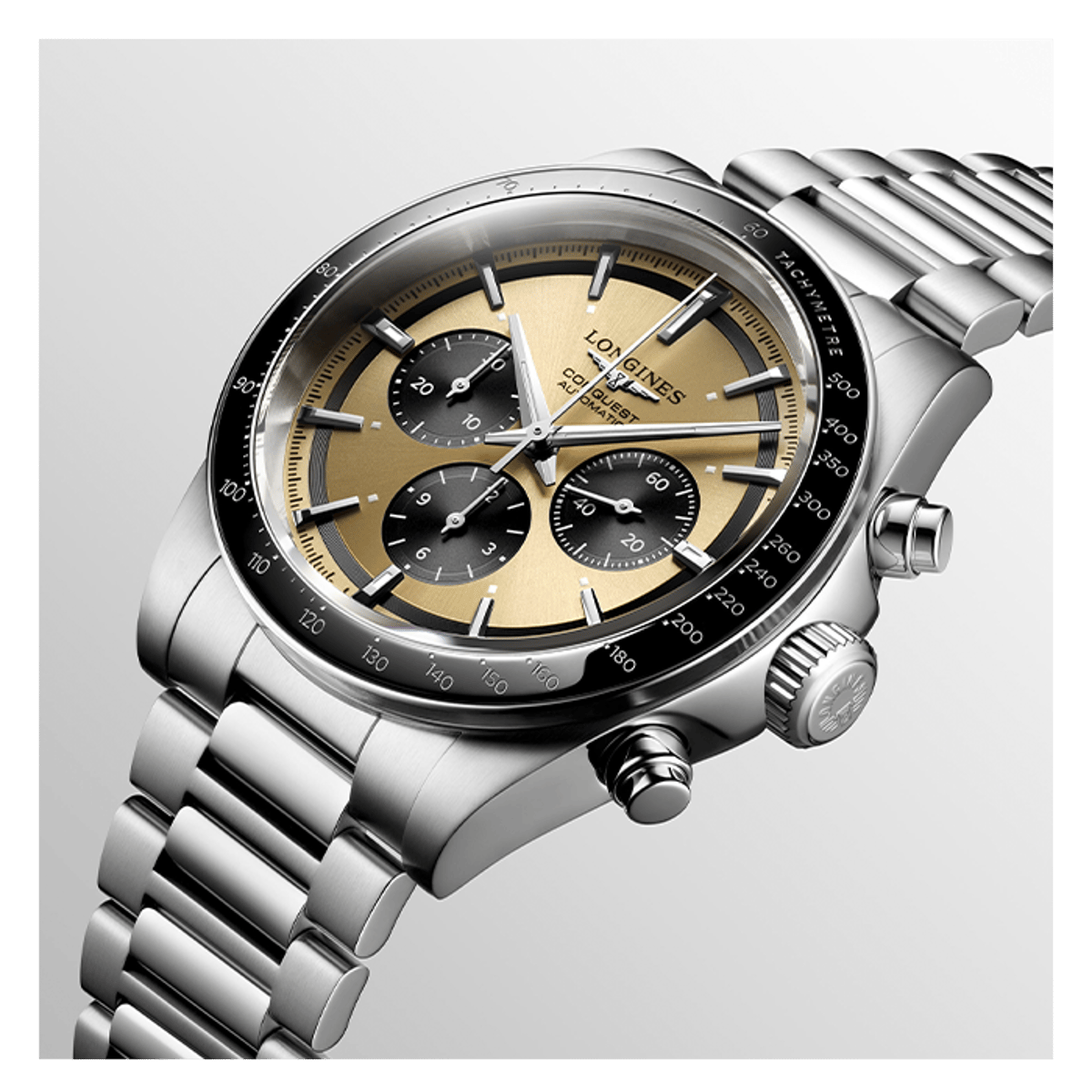Cada peça oferece uma fusão discreta de tecnologia e estética, com características de alta performance que acompanham o estilo de vida dos que se desafiam a ir além. A Conquest é a escolha perfeita para quem busca uma expressão refinada de determinação, unindo tradição e inovação num relógio icônico.