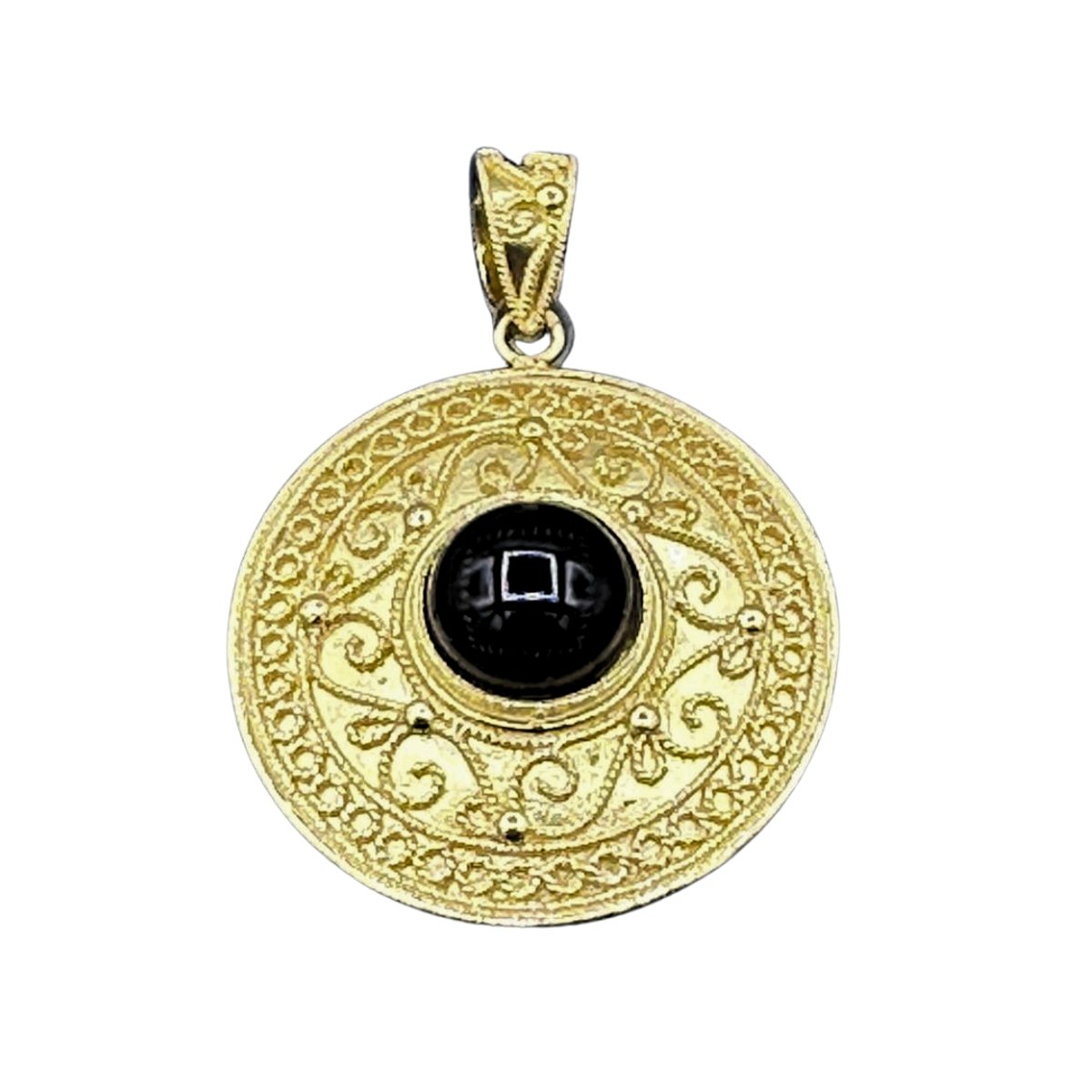 Medalha em Prata Dourada 925 com Filigrana e Pedra Castanha
