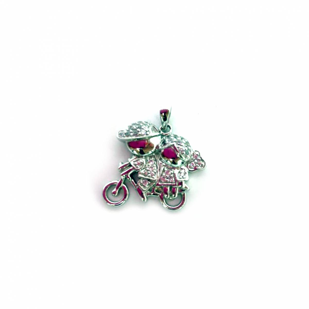 Pendente em Prata 925, Menino e Menina a andar de bicicleta com 3,8g Zircónias Brancas.