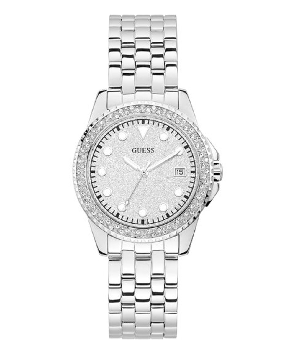 O Guess Spritz W1235L1 é um relógio feminino sofisticado, desenhado para quem valoriza um toque de glamour e elegância. Com detalhes em cristais Swarovski e acabamento prateado, este acessório torna-se a escolha ideal para compor looks refinados.