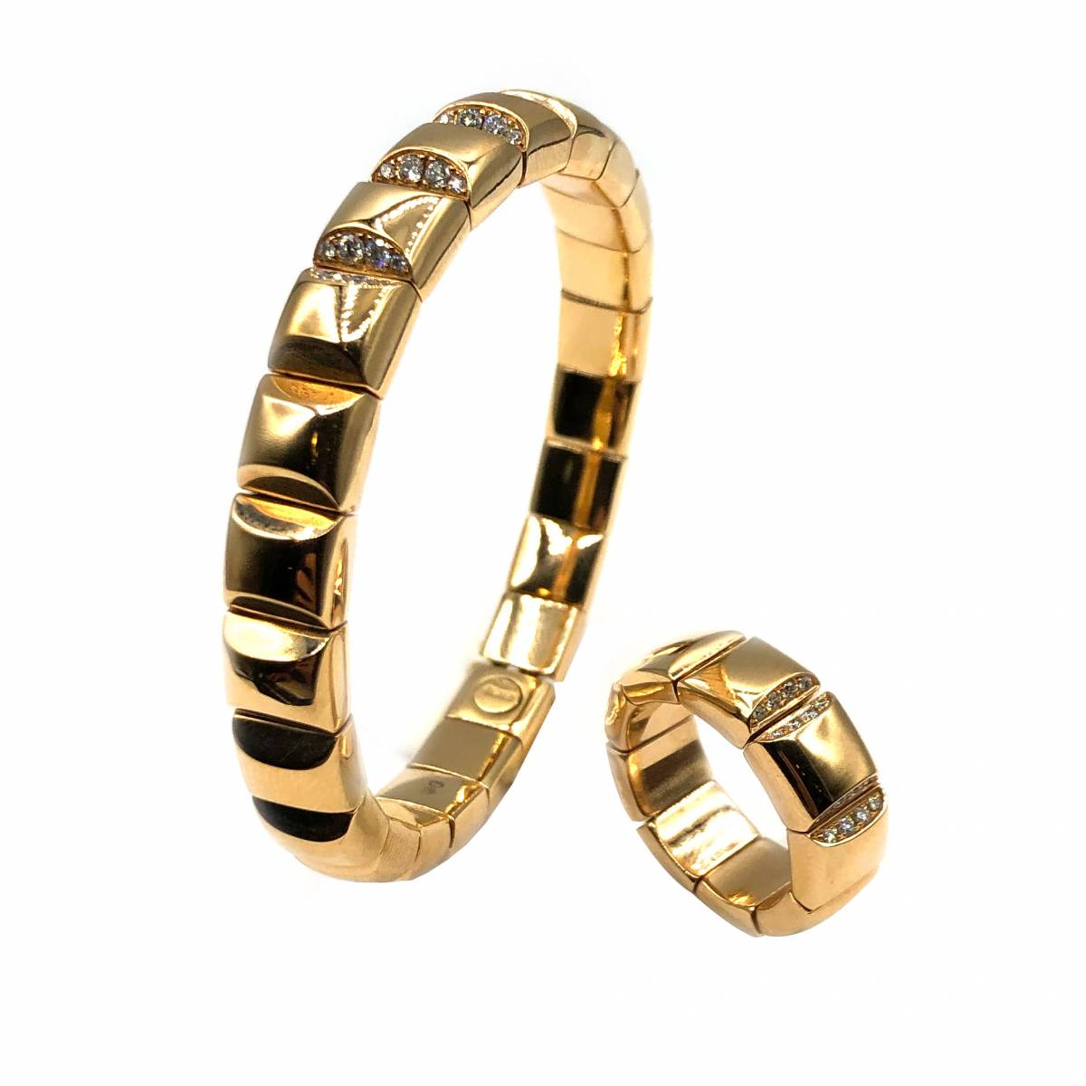 Pulseira e Anel Ouro Rosa Quadrados Flexíveis com Diamantes PU02663 / AN4835