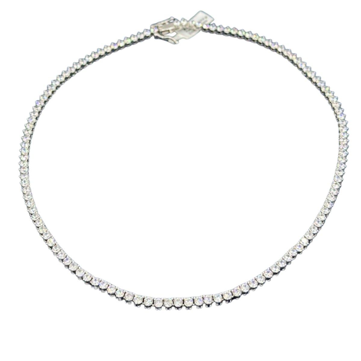 Este colar semi rígido em prata 925 com Zircónias brancas é a escolha perfeita para quem busca uma peça sofisticada e cheia de brilho. Com 45 cm de comprimento e pesando 19 gramas, ele combina a durabilidade da prata 925 com o brilho radiante das Zircónias brancas, criando um design elegante e refinado. Ideal para ocasiões especiais ou para complementar o visual diário, este colar é uma joia de alta qualidade que adiciona um toque de classe e sofisticação a qualquer look.