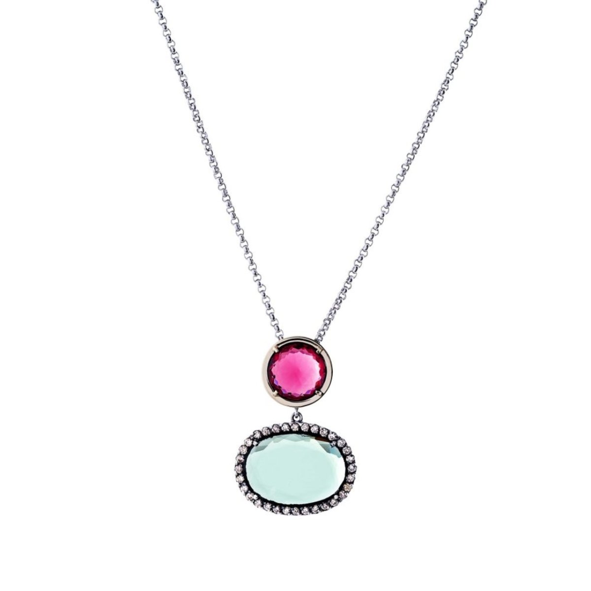 O colar Vari é uma peça única que combina a sofisticação da prata 925 com o luxo do ouro 375, adornada com zircónias brilhantes e um quartzo hidrotermal de beleza excepcional. Com um design elegante e moderno, este colar é perfeito para quem busca uma joia que reflete sofisticação e estilo. O quartzo hidrotermal adiciona um toque de cor vibrante à peça, tornando-a ideal para quem deseja uma joia versátil e atemporal.