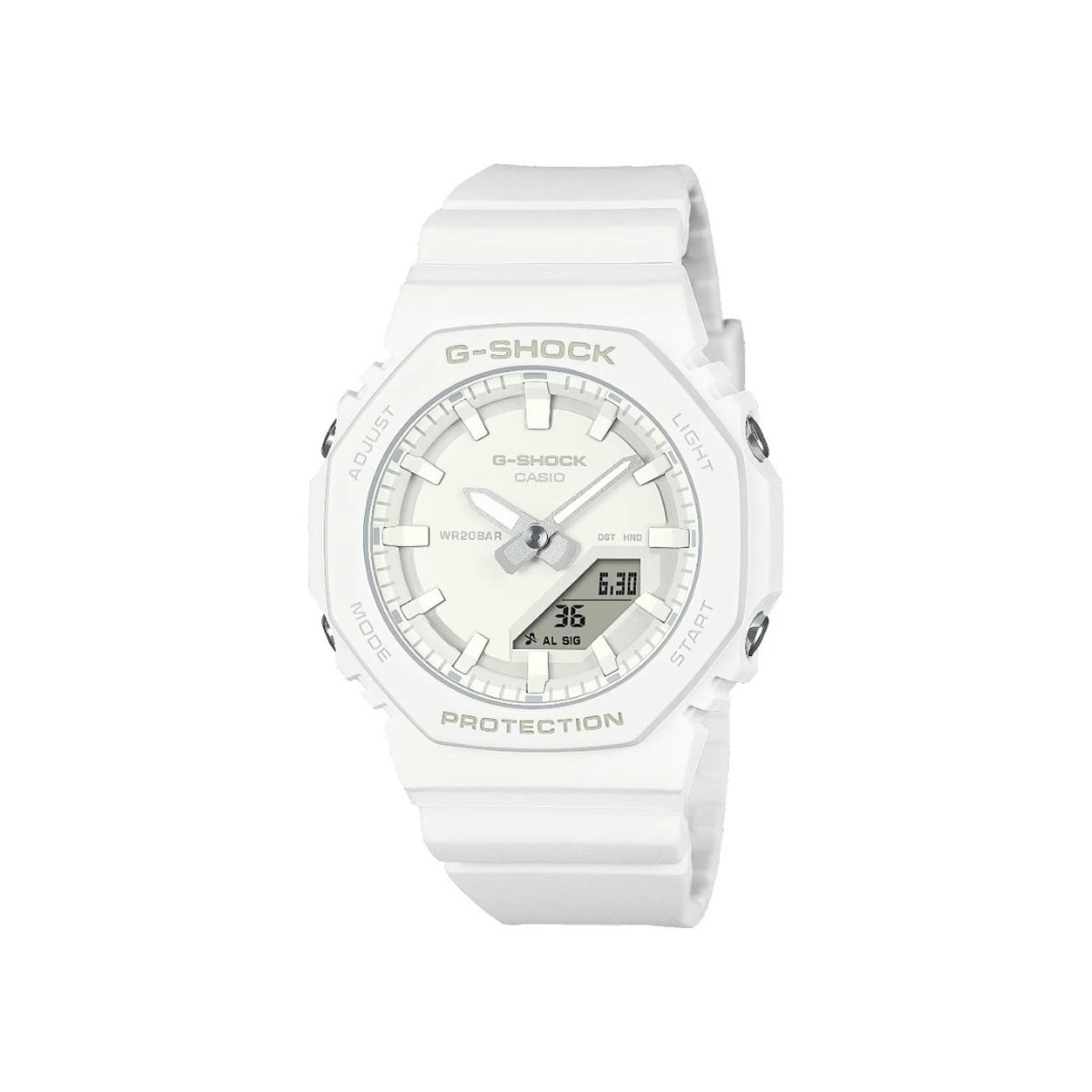 O Relógio CASIO G-Shock GA-2100-7A7ER combina a robustez e a funcionalidade da linha G-Shock com um design moderno e minimalista, ideal para mulheres que procuram um acessório prático e estiloso. Com uma coloração total em branco, este modelo destaca-se pelo seu aspeto clean e sofisticado, perfeito para o uso diário e para acompanhar o estilo urbano.